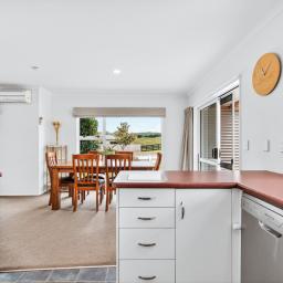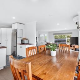 Inside, the spacious layout is both practical and inviting. You will find three spacious bedrooms and a well-appointed bathroom with separate WC. The modern kitchen comes fully equipped with a rangehood, cooktop, oven, and dishwasher and flows onto the open plan lounge and dining area, perfect for daily life and entertaining. Year-round comfort is guaranteed with a heat pump, while the double internal-access garage with remote control provides ultimate convenience and security.