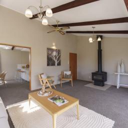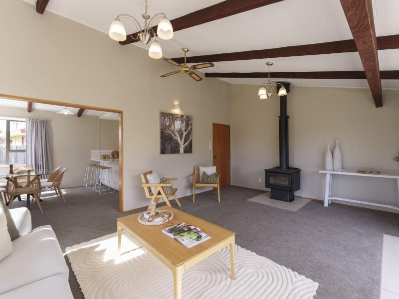 On cooler nights the home is kept cosy and warm with the heat-pump and wood-burner. Gas hot-water adds to the efficiency and comfort this charming home delivers.
