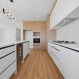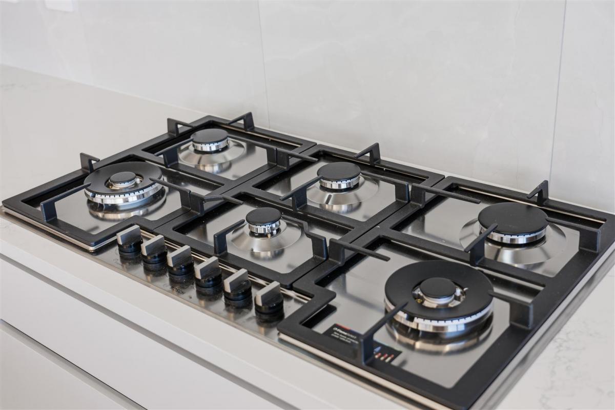 A designer kitchen that will make you swoon: high-end appliances, a spacious walk-in pantry, and plumbing ready for your double fridge - chef's kiss!