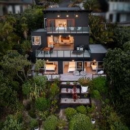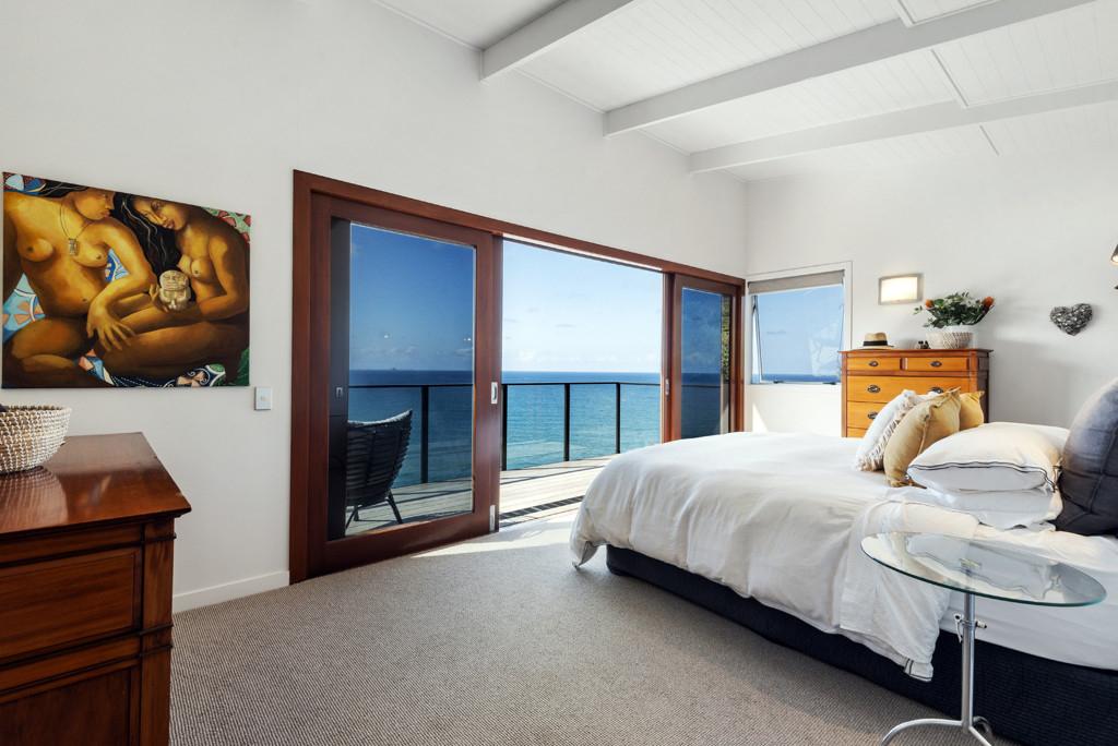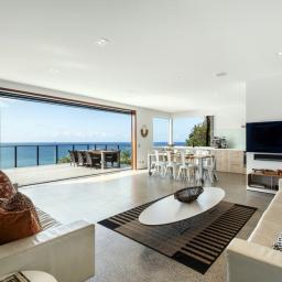 Anchored to the cliffside, its architecture is sculpted around light, air, and outlook. The design flows across three tiers - each one opening to broad decks that draw the sea close and blur the line between inside and out. At the centre, the open-plan living level is expansive yet intimate - a space for gathering, cooking, and unwinding, where glass doors slide away and the entire room becomes part of the view. Days unfold here to the sound of waves and the sweep of sunlight across the water. Above, the main suite sits in quiet seclusion - a private escape with its own terrace, walk-in wardrobe, and generous ensuite. Below, the guest or family level offers three well-proportioned bedrooms, a full bathroom, and laundry - a self-contained zone designed for ease and privacy.