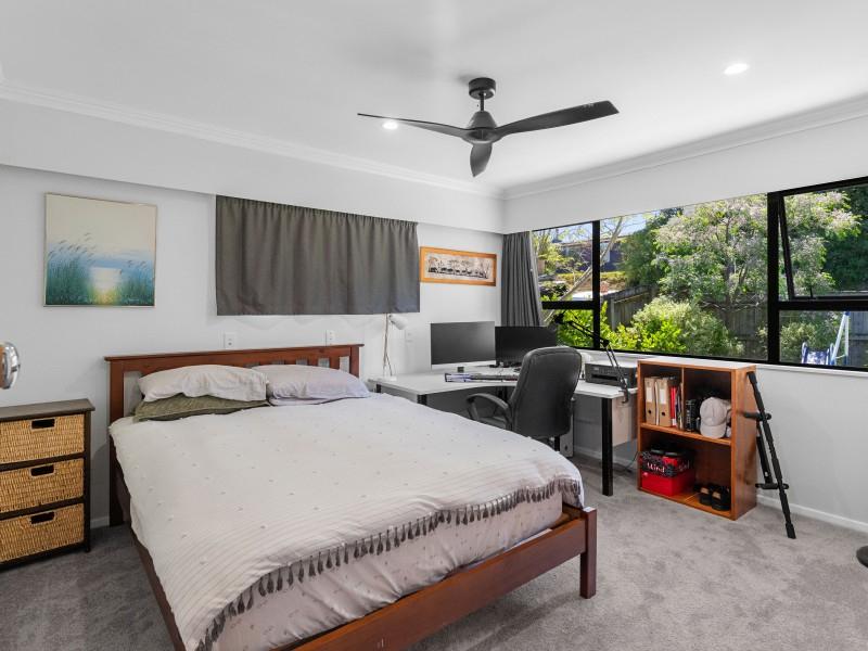 The heart of this home is undoubtedly the upstairs kitchen, dining and lounge areas, which flow seamlessly onto a large deck with a spa pool, creating a perfect setting for entertaining family and friends or simply enjoying a quiet evening under the stars. The kitchen is well-equipped and designed to cater to both everyday meals and special occasions, enhancing the home’s warm and welcoming atmosphere. Five + generously sized bedrooms provide ample space for everyone, offering comfort and privacy. Well-appointed bathroom upstairs serves the household with another WC downstairs, ensuring that morning routines run smoothly. Downstairs also has a media room. Kitchen and laundry area with garage and outdoor access. Two heat pumps, an electric heater and ceiling fans make for all-year comfort.