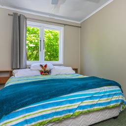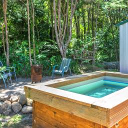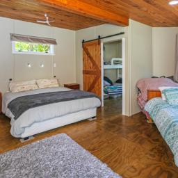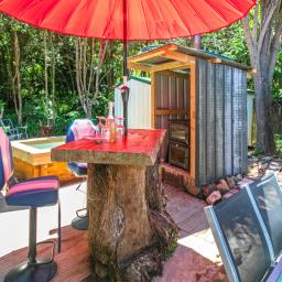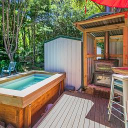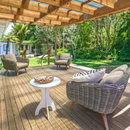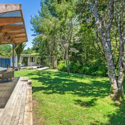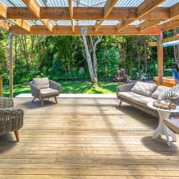 Step out onto the spacious covered deck, fitted with drop-down blinds for year-round shelter and comfort. It's the ideal place to unwind, listening to the gentle ripple of the creek and enjoying the abundant birdlife that thrives in the surrounding native bush.