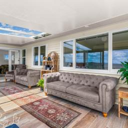 The standout feature? A sun-drenched conservatory that opens to the deck-perfect for soaking up sweeping countryside and