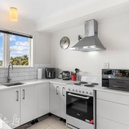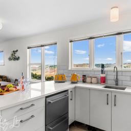 inviting, with a sleek modern kitchen featuring stunning granite benchtops, generous storage, and abundant workspace. A heat