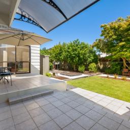 Comfort is assured year-round: dual heat pumps provide heating in winter and cooling in summer, and parts of the house are double glazed. The fully fenced, corner site keeps things secure yet open - you won't feel hemmed in by neighbours. Outdoors, the wraparound grounds are beautifully green and offer plenty of space, including a veggie garden, well-established fruit trees (plum, apple, fig, and pear), and a patio off the living area - perfect for entertaining or relaxing in the sun.