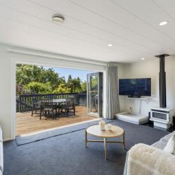 Comfort is enhanced further by the home's excellent heating and energy features. A Rinnai HydraHeat® Integrated Hot Water Heat Pump provides efficient, year-round hot water, while insulation throughout helps maintain a cosy environment in every season. A wood fire in the lounge adds inviting warmth during cooler months, creating a homely atmosphere that you'll appreciate all winter long.