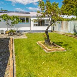 Set on an established section with fruit trees and productive veggie plots, the outdoors already offers a head start for those who love gardening or want to live a little more sustainably. The sunny north-facing covered porch is the perfect spot to relax and enjoy the day, soaking up sun while overlooking the garden.