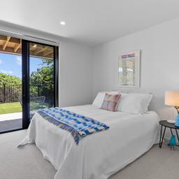 The sophisticated master suite offers direct outdoor access, a beautifully tiled ensuite, and a generous walk-in wardrobe, and a further versatile second bedroom featuring its own patio access and an elegant Jack-and-Jill bathroom, perfect for guests, professionals working from home, or multi-generational living.