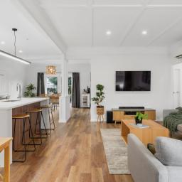 This exquisite family home blends mid-century charm with contemporary elegance. Originally built in 1957, this approx 205m2 weatherboard residence, including the garage, has been extended and meticulously renovated, creating a perfect sanctuary for modern family living.