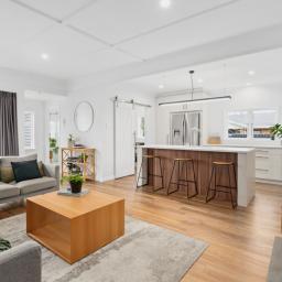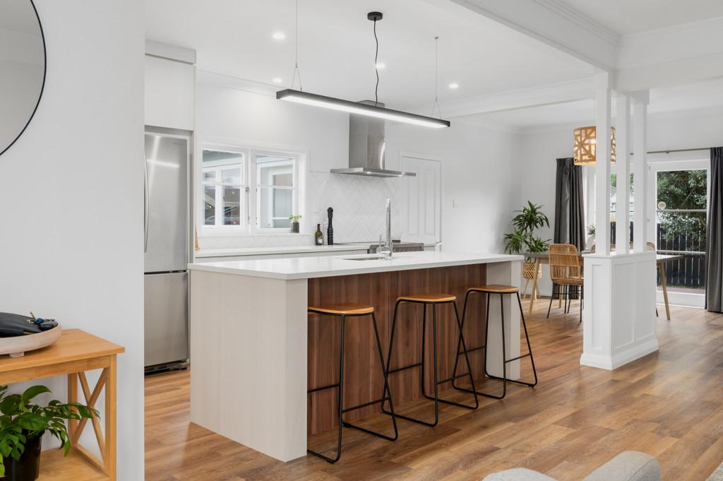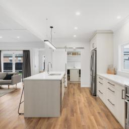 Inside, you'll be greeted by space and light. At the heart of the home is the state-of-the-art open plan kitchen, equipped with appliances that will delight any home chef. The kitchen includes a scullery with a stylish barn door slider, providing additional storage and preparation space.