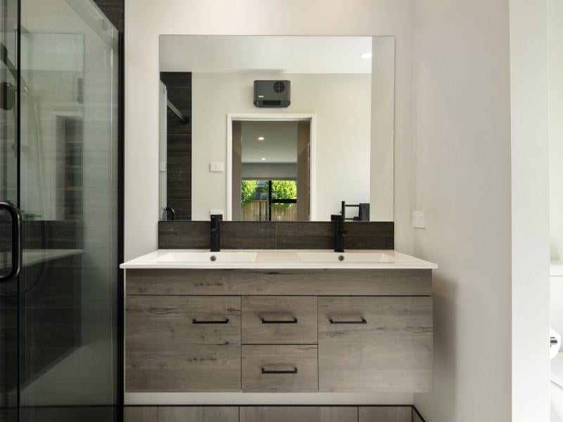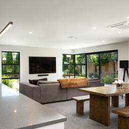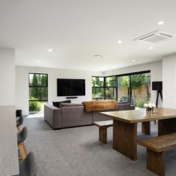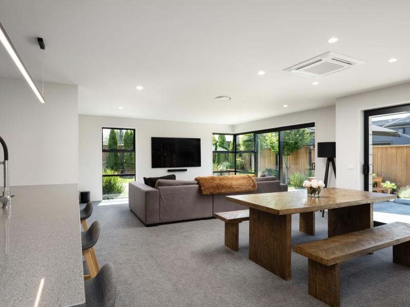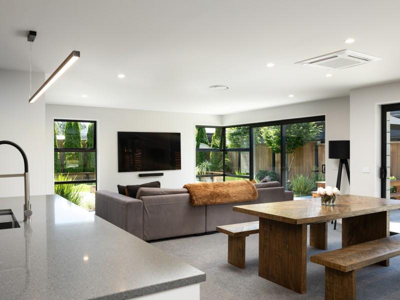 Comfort is elevated through a Smooth-Air HEX390 balanced pressure heat recovery ventilation system, ducted air conditioning and a heat pump – a complete climate solution that matches the home’s calibre.