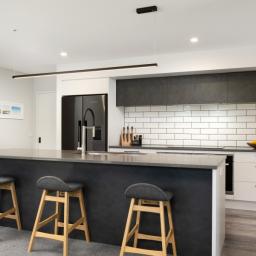 The first impression is powerful and unmistaken, the form and materiality speak for themselves – cedar, charcoal block, sculpted landscaping and a frontage that feels composed, confident and deliberately premium.