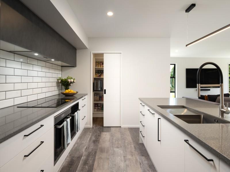 Inside, the design gets even stronger. The kitchen, dining and living zone is the anchor. Refined lines, stone surfaces, quality appliances and a walk-in pantry that lifts the whole space. The living and dining areas are light-filled and calm, balanced by a separate lounge that adds depth and flexibility.