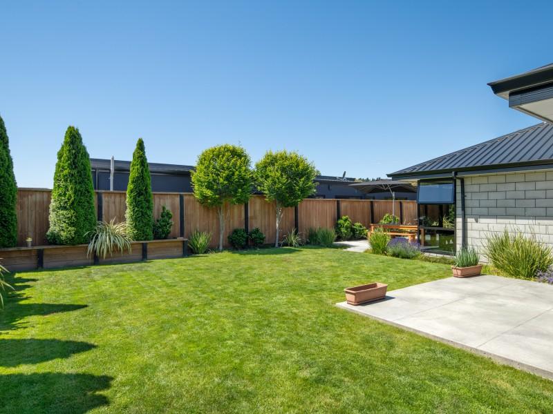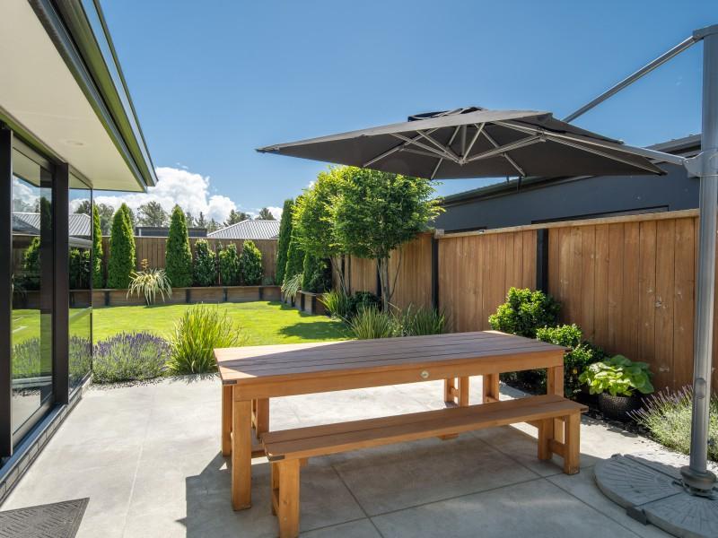 Doors open north to a private entertaining zone where the sun stays long and the transition to the gardens is seamless. The backyard has presence – established, manicured and designed to complement the architecture rather than compete with it.