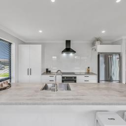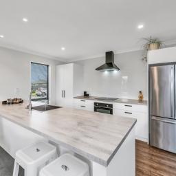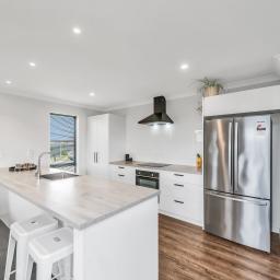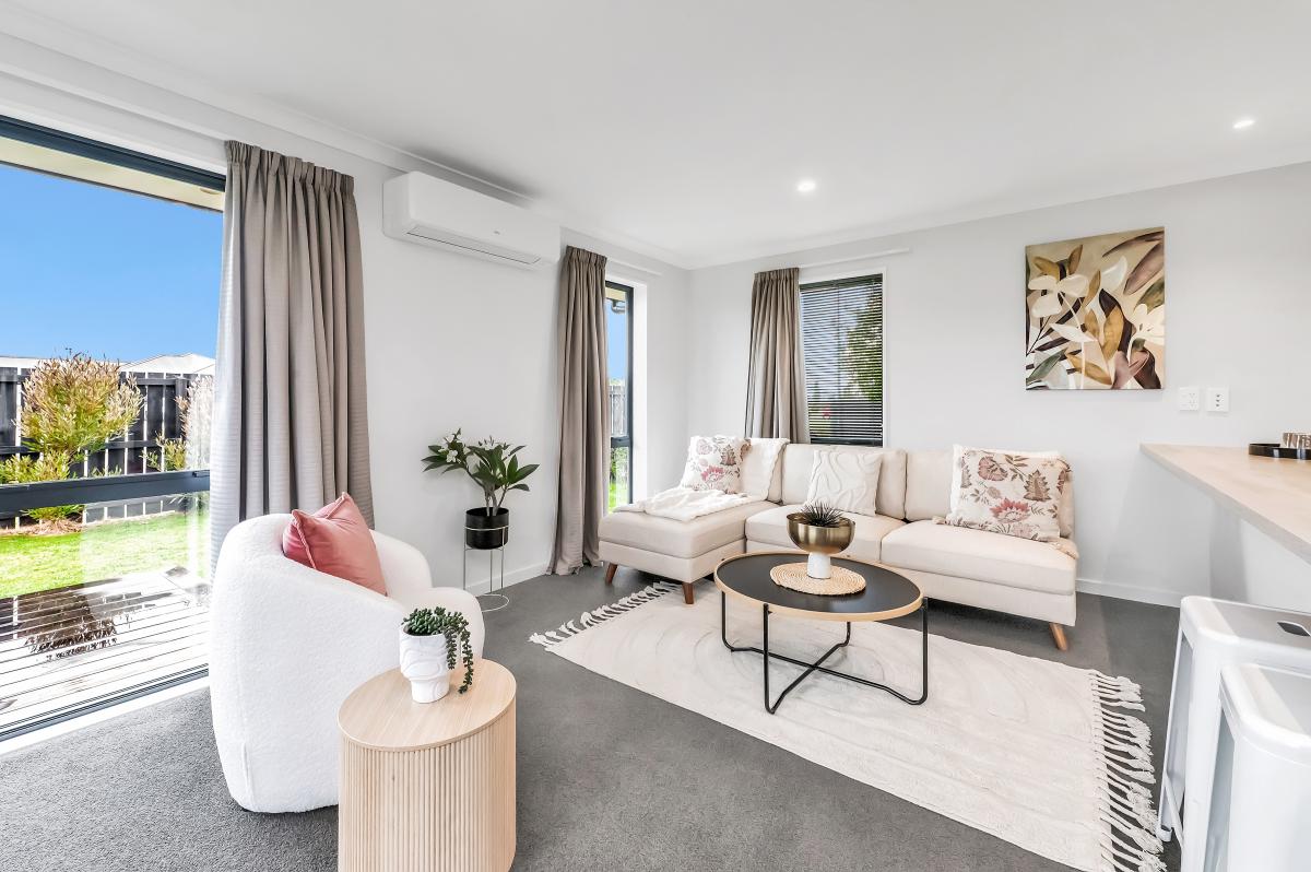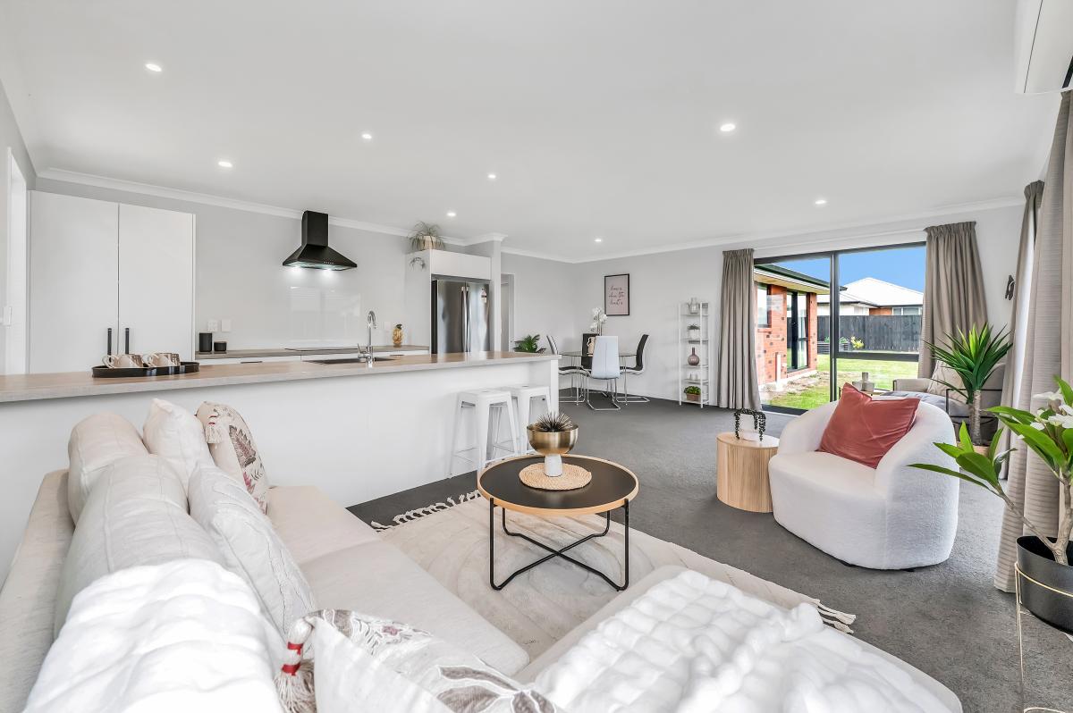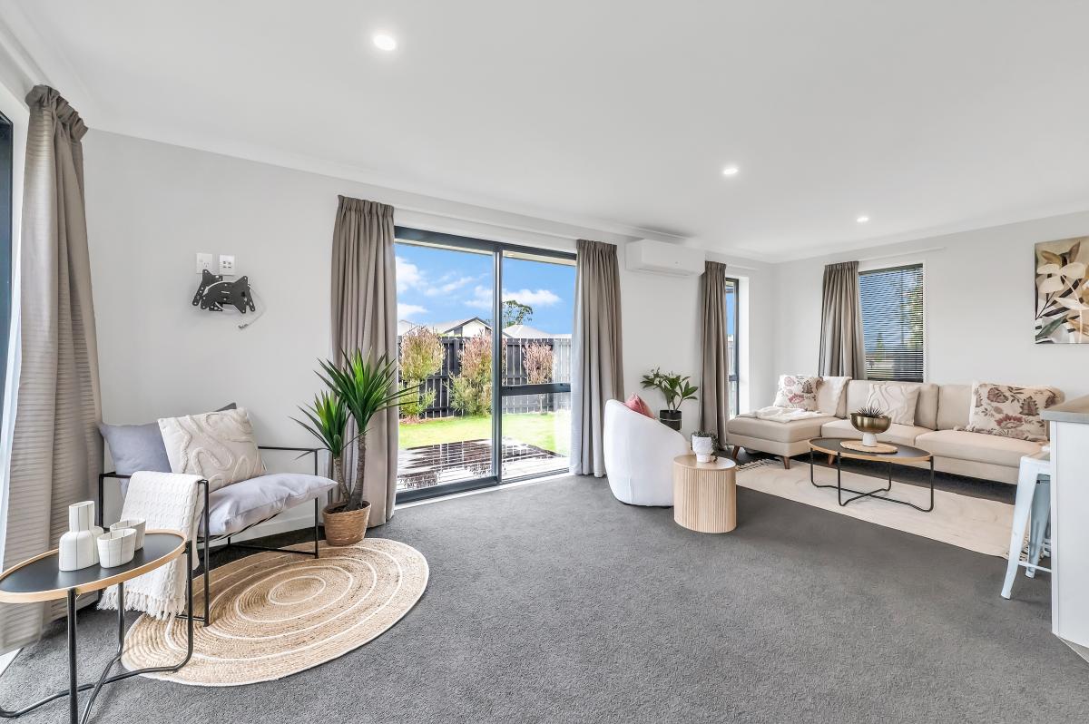 Step inside to an inviting open-plan kitchen, dining, and living zone—all bright, warm, and effortless thanks to a heat pump and sliding doors that spill out to the generous backyard. The kitchen is crisp and practical, complete with an island bench and a clear line of sight across the living space.