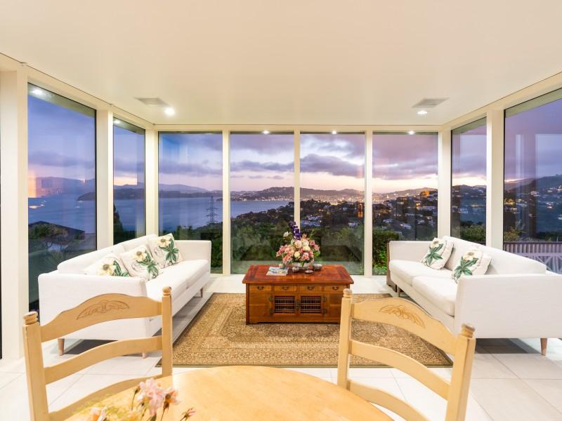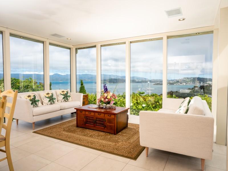 - Architecturally extended and modernised with floor-to-ceiling double-glazing to showcase the spectacular city and mesmerising harbour views over a bush-clad hillside teeming with rhododendrons, camellias and magnolias
