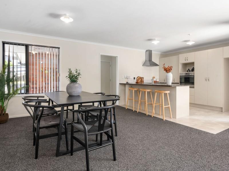 At the centre of the home is a bright, open-plan living zone where the modern kitchen, dining, and lounge connect seamlessly. It’s a warm, social space that suits both busy weekday routines and relaxed weekend gatherings. Sliding doors open out to a sunny patio, creating an easy indoor–outdoor flow and a great spot for entertaining or unwinding while overlooking the secure backyard.