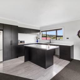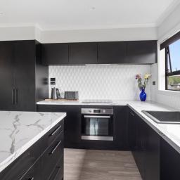 - The heart of the home features a contemporary modern kitchen equipped with ample storage, quality appliances, and a functional layout that makes cooking a joy.
