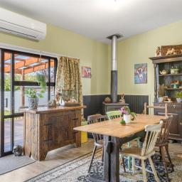 Set on a sunny section in central Westport, the home offers three generous bedrooms, an open-plan kitchen and dining area, plus a separate sun-filled lounge. A multi-fuel burner and heat pump ensure year-round comfort.