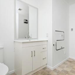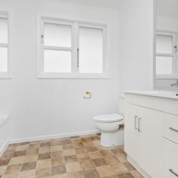 Down the hallway to accommodation. 3 bedrooms here, each with wardrobe storage, and serviced by a sleek bathroom offering- toilet vanity and shower over the bath. A separate laundry with exterior access adds convenience and leads directly to the washing line and outdoor areas.