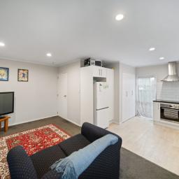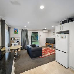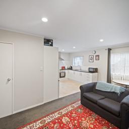 This charming free-standing two-bedroom house offers an open-plan kitchen and living area, one modern bathroom, and the comfort of a heat pump. It also includes a single garage for your convenience.