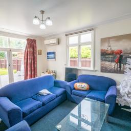 It contains three generously sized double glazed bedrooms and a sunny living area that opens out onto a patio with a good sized, flat back yard.