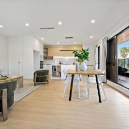 • Designer kitchen with Miele appliances, ample storage, open-plan living and dining area.