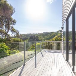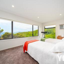 The two bedrooms upstairs are massive, light filled and offer the best views of the house. There is plenty of storage in the property, every bedroom has walk-in wardrobes, and the layout is designed to suit families of any size. Two bathrooms ensure mornings and evenings flow smoothly for everyone, plus you will love the view whilst you enjoy soaking in the spa bath. The open, airy living spaces invite you to take in the views from every angle, creating a sense of calm and connection to the natural surroundings.