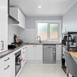 Smartly configured and set to capture the northern sun, the layout utilises space efficiently. The open-plan living zone is bright and airy beneath a raised stud, with double glazing inviting warmth and natural light throughout the day. The kitchen is both sharp and highly functional, showcasing gorgeous cabinetry hardware, ample storage, and a full range of Bosch appliances. Sliding doors flow out to a private, easy-care outdoor area-secure, sun-soaked, and ideal for unwinding.