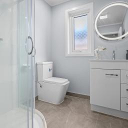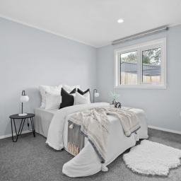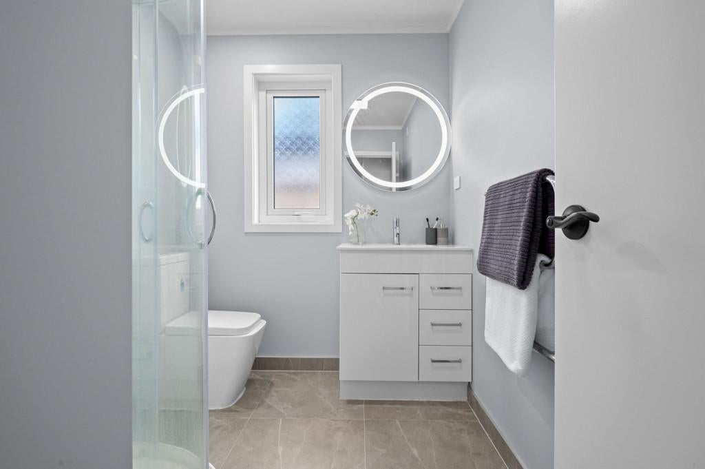 All three bedrooms are well-sized with fitted wardrobes, with the master enjoying the added luxury of its own ensuite. The main bathroom continues the modern feel with sleek finishes and an LED mirror. Comfort is assured with LED lighting, a heat pump, and single internal-access garaging.