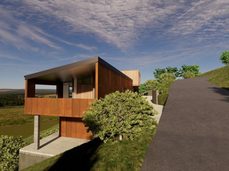 Nature's combined resources enhance the scene; all day sun allows passive heating, wood pigeons regularly whoosh across the skyscape and tuis attracted by nearby flaxes, contest the sky. Nestled tranquilly on the hillside, your home can blend with the serene environment.