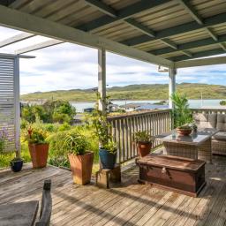 Inside, two generous double bedrooms and a flexible studio space provide room for family, guests, or creative pursuits. The open-plan kitchen and lounge connect seamlessly to wraparound decking, carefully sheltered from the prevailing winds for year-round enjoyment. Double glazing and a heatpump, provide a cosy, welcoming atmosphere, no matter the season.