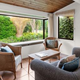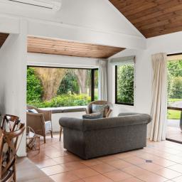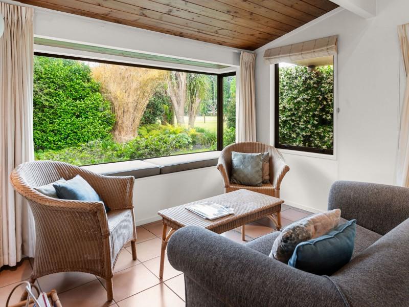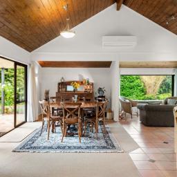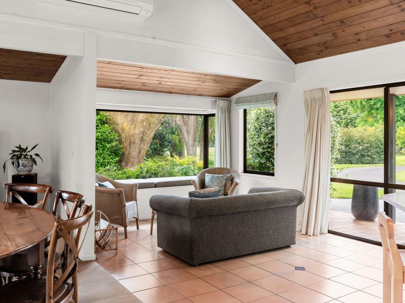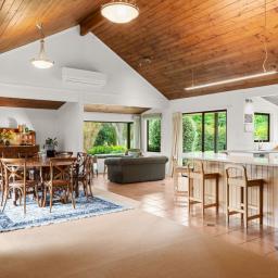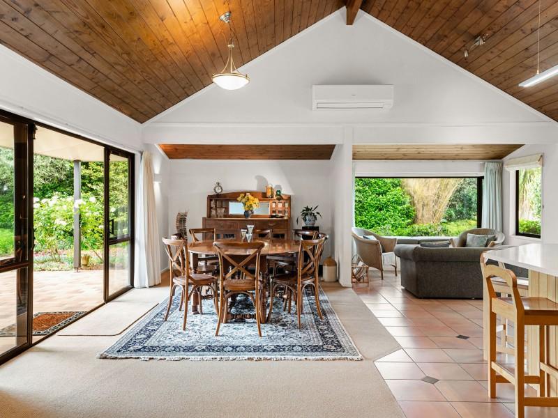 Set amongst mature gardens and immaculate grounds, the home itself is warm, welcoming, and perfectly positioned to frame tranquil green outlooks from every window. Cathedral-style ceilings and classic Lockwood features give the main living zone a sense of volume and charm, while the bench seat overlooking established landscaping offers a sunny nook that instantly becomes a favourite spot for morning coffee or a quiet moment of retreat.