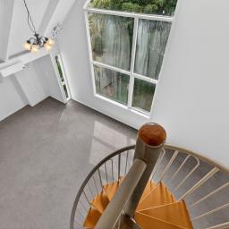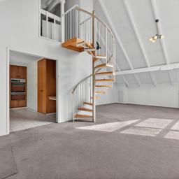 The upper level features a spacious one-bedroom home with generous living areas, elevated leafy outlooks, and a loft space - perfect as a home office, hobby room, or additional storage.