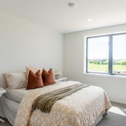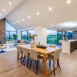 Beautifully executed and bathed in all-day sun, the home offers a refined simplicity: clean architectural lines, a calm internal aesthetic, and a seamless connection to the natural surroundings. The generous open-plan living space is defined by volume and natural light, with long sightlines out toward the peaceful rural aspect behind, a rare outlook in a modern subdivision.