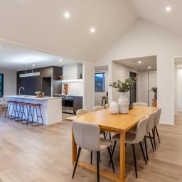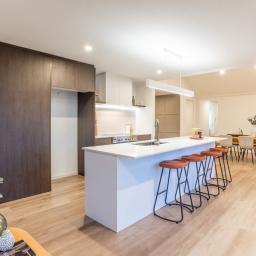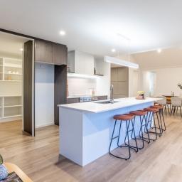 At the heart of the home, the kitchen and dining area strike the perfect balance of contemporary styling and functionality. A discreet walk-in pantry sits behind the kitchen, giving the everyday essentials their own dedicated space while keeping the main kitchen beautifully uncluttered.