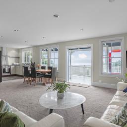 Downstairs, you'll find three well-appointed bedrooms, including a generous master with striking feature windows framing the stunning outlook, plus excellent wardrobe space throughout. The family bathroom is modern and easily caters for all three bedrooms on this level. Heat pumps on both levels keep the home warm and comfortable during cooler months.