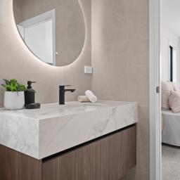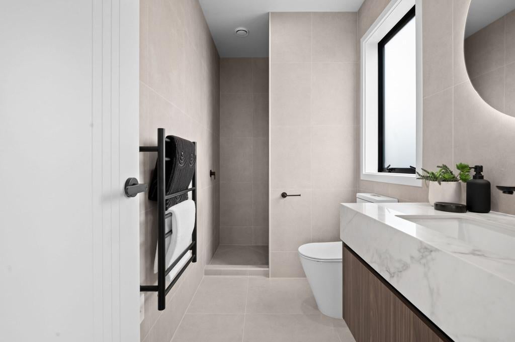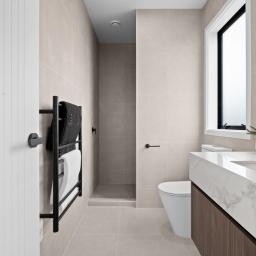 Accommodation is generous, with four double bedrooms offering versatility for family, guests, or extra workspace. The master suite brings a sense of retreat with its walk-in robe and elegant ensuite. Bathrooms are crisp and contemporary - fully tiled showers, quality fixtures, and LED mirrors that elevate every routine.