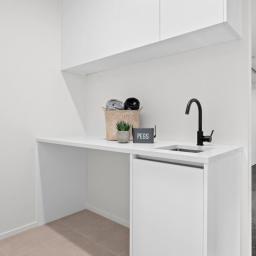 The kitchen is a centrepiece of modern refinement: engineered stone, premium stainless appliances, 5-burner gas, a generous island, and a fitted walk-in pantry that keeps everything beautifully organised. The living zone also features a built-in office workstation, perfect for work-from-home days, homework, or managing the household in style. Slide open the doors and enjoy alfresco dining, sunny afternoons, and relaxed entertaining on the lawn.