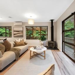 Tucked away down a long private driveway, this charming single level brick home offers peace, privacy, and a true connection to nature, all in one of Titirangi's most sought-after cul-de-sacs on Sonnenberg Way.