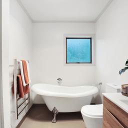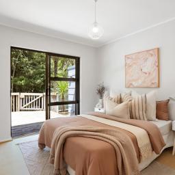 Two double bedrooms open via ranchsliders onto the rear deck, complemented by a third single bedroom. The modernised bathroom, complete with a striking claw-foot bath, is paired with a separate second toilet for added convenience. Comfort and security are assured year-round with a woodburner, heat pump, HRV system, and alarm.