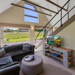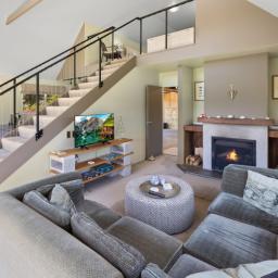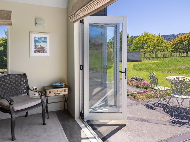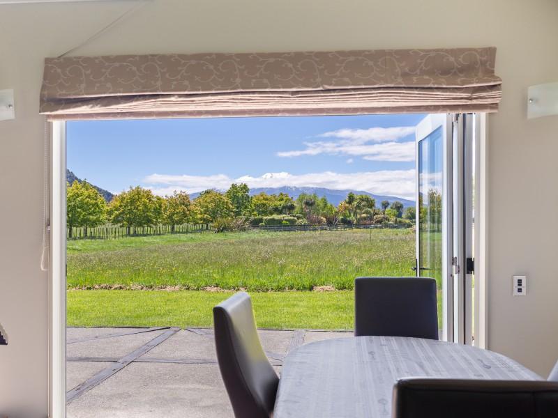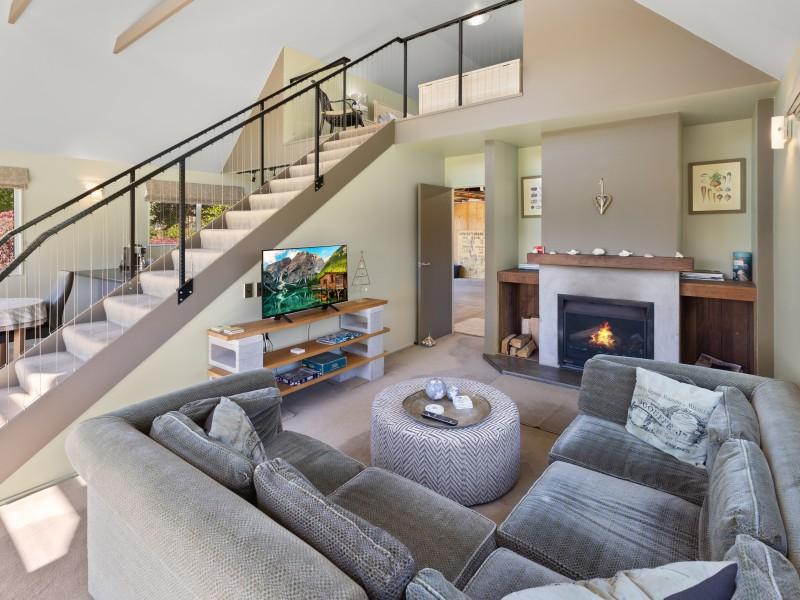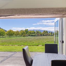 So let's take a look around...the remote opens the garage door which also houses the laundry and a separate toilet for convenience. Inside we are welcomed by a lovely lounge with views, the dining room with views and the kitchen, with views! The kitchen has underfloor heating and there is a fabulous Jetmaster open fireplace in the lounge. Two sets of bifold doors open up on to the large terrace, a great spot to enjoy the outdoors. And on the western side of the house is a large sunny deck and another great spot to enjoy the fresh mountain air, the views, lovely evenings and beautiful starry nights.