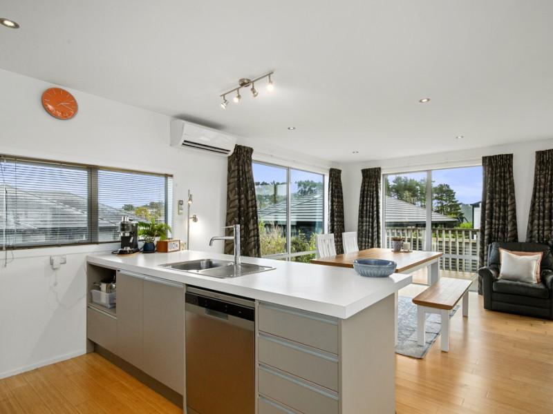 Step inside and you’re greeted with a bright and inviting open-plan kitchen, dining and living area that flows effortlessly to a sun-drenched deck – perfect for relaxed outdoor entertaining or soaking up the late afternoon rays. The contemporary kitchen is well-appointed, with plenty of bench space and storage, ideal for busy households or keen entertainers.