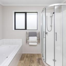 The bathroom is tastefully designed, combining functionality with modern aesthetics. Every aspect of the home has been thoughtfully crafted to ensure your comfort.