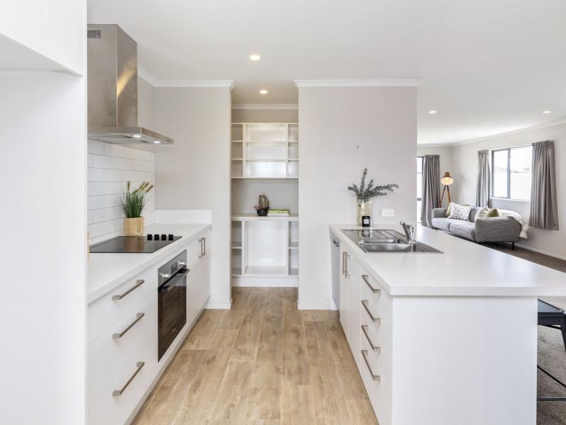 As you step inside, you are greeted by a spacious open-plan living area that invites light and warmth. The contemporary design makes it a fantastic space for relaxation and entertaining. The kitchen features a walk-in pantry, catering to your culinary needs, while offering ample storage and workspace for preparing meals. The seamless transition from the living area to the outdoors encourages a relaxed lifestyle, whether you're hosting friends or enjoying peaceful evenings with loved ones.