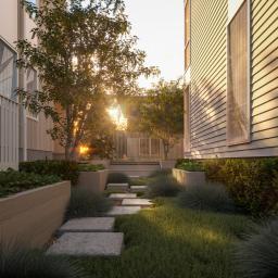 - North-facing high-quality outdoor living - decks, landscaped courtyards, and a shared native-planted communal garden
