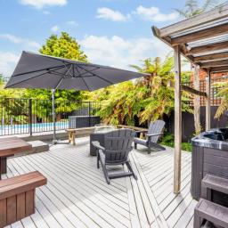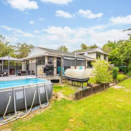 This home does not fall short on entertainment and leisure. Step outside onto the spacious deck, where you can unwind in this expansive outdoor area that is perfect for hosting barbecues, family gatherings, or simply enjoying some quiet time in the garden full of surprises. Kids will delight in the charming swimming pool and the surprising presence of resident eels in the garden stream, providing endless fun and exploration. Why go on holiday when you have an outdoor area like this?