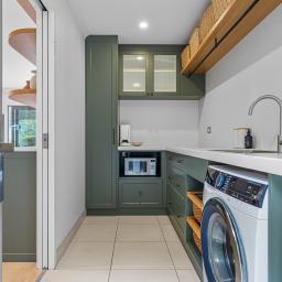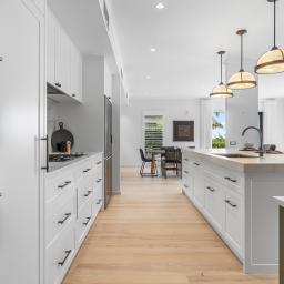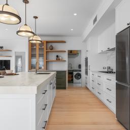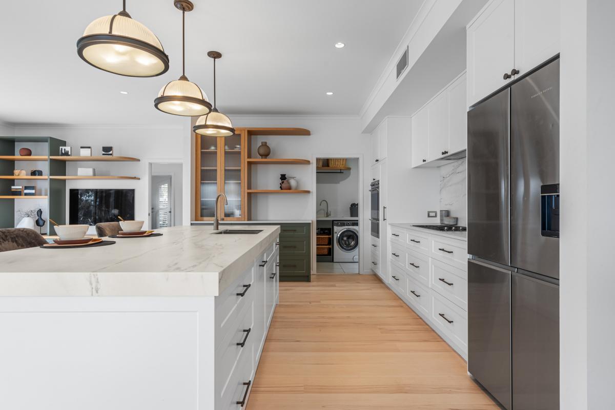 • Designer kitchen with a lacquer finish and Dekton porcelain and Corian benches. The generous size scullery provides an abundance of storage and is versatile in use.