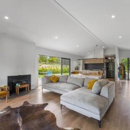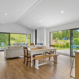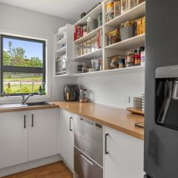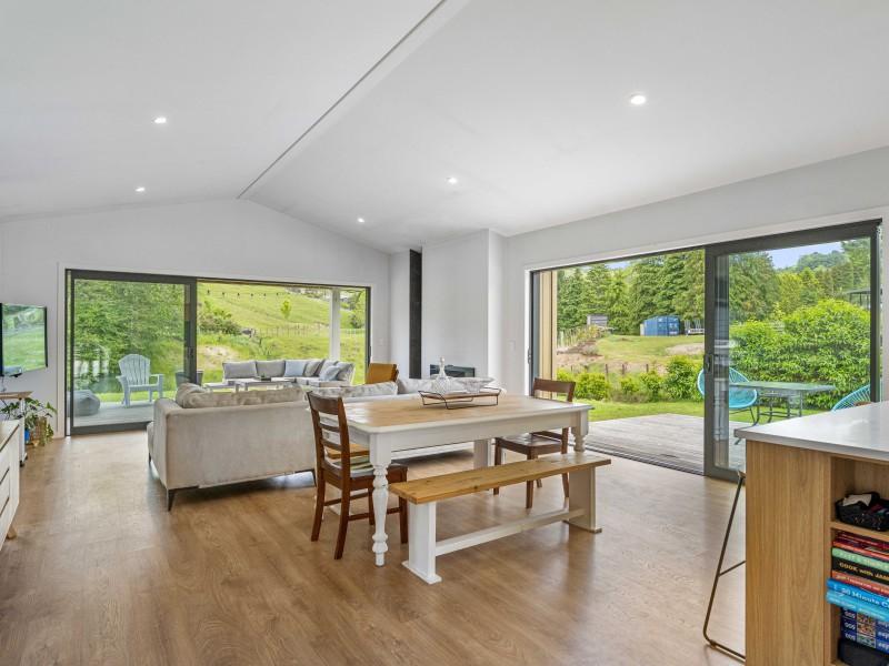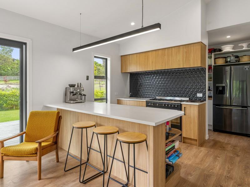 Set on over an acre of private, sanctuary-like grounds, the property offers abundant opportunity to further landscape, expand, or craft your ideal outdoor lifestyle. The contemporary kitchen - with scullery, gas cooking, and seamless flow to a serene, tree-lined backdrop - forms the heart of the home.