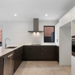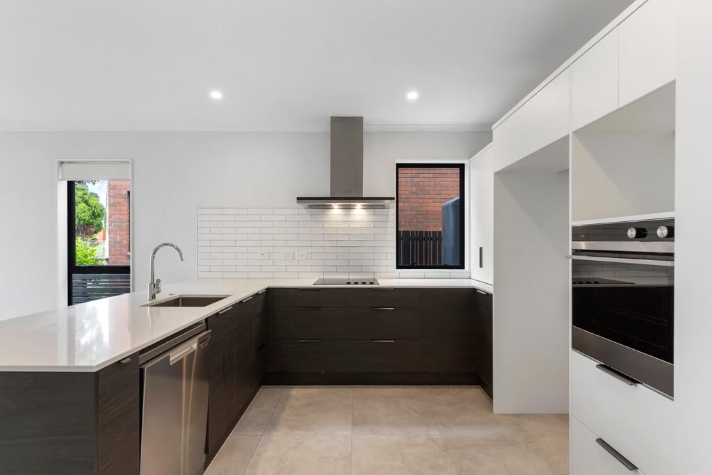The ground floor features a sleek, open-plan kitchen and dining area complete with high-quality Fisher & Paykel appliances - perfect for entertaining or everyday family life. A separate lounge offers a cosy retreat with seamless indoor-outdoor flow to a private patio, ideal for summer evenings and alfresco dining. A guest toilet, laundry area, and generous storage complete the lower level.
